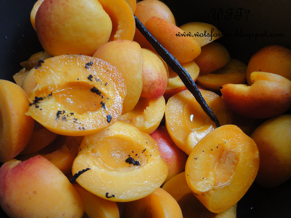 Firstly, I took the apricots to the pub, where they got trod on and some got a bit squished. Then I left the squished ones in the bag on a 34C degree day and forgot all about them. The 'one bad apple' saying applies here, so I had to go and buy some more apricots to make up the recipe weight.
